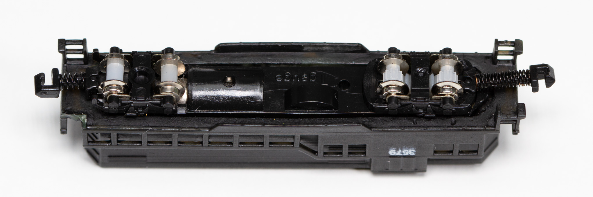 Compared to the 16m (35.5mm) motorized chassis I’ve used for kitbashing, which sometimes stalls or runs a bit jerky at low speeds, the GP8 performed much better. I think the slightly higher weight (2.48g vs. 2.08g) plays a role. While a 0.4g difference might seem negligible, in T Gauge it makes a difference. The additional width probably helps lower the center of gravity as well, adding to its stability.